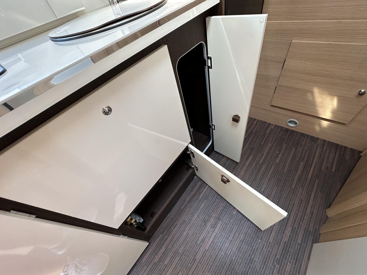 Úložné prostory: Spousta skříněk a často i velká „garáž“ v zadní části pro kola, sportovní vybavení nebo zavazadla.