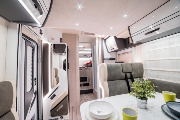Interiér luxusního obytného auta je navržen tak, aby poskytoval maximální pohodlí a atmosféru skutečného domova na cestách. Kvalitní materiály, promyšlené osvětlení a precizní zpracování vytvářejí prostředí, kde se budete cítit příjemně od první chvíle. Ergonomické uspořádání nabízí dostatek úložného prostoru, pohodlné sezení i plnohodnotné spaní, zatímco moderní kuchyňská zóna a koupelna dodávají cestování naprostou soběstačnost. Díky propojení designu a funkčnosti získáte interiér, který vás nadchne nejen esteticky, ale i prakticky — a každá cesta se tak stává výjimečným zážitkem.